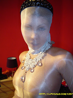 Something I like very much about pantyhose encasement is the nylon mask. Somehow it gives a little mystery to the person who wears it. Later today I wll probably do a nice close up nylon mask shooting :-)